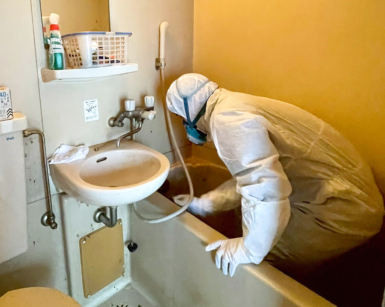 孤独死が起きた現場では、特殊清掃の作業が必要になる場合が多数ございます。私たち「遺品整理あおぞら」には、脱臭マイスターの資格を所有する社員も在籍しています。特殊清掃を行なった後、しばらくして臭いが復活してしまわないよう、当社へすべてお任せください。